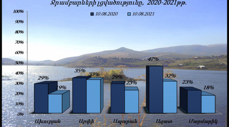 Նախորդ տարվա նույն օրվա համեմատությամբ Ախուրյանի ջրամբարում ջրի ծավալը պակաս է 54.2 մլն. մ³-ով, Արփի լճի ջրամբարում՝ 1.8 մլն. մ³-ով, Ապարանի ջրամբարում` 5.8 մլն. մ³-ով, Ազատի ջրամբարում՝ 10.5 մլն. մ³-ով և Մարմարիկի ջրամբարում` 1.22 մլն. մ³-ով: