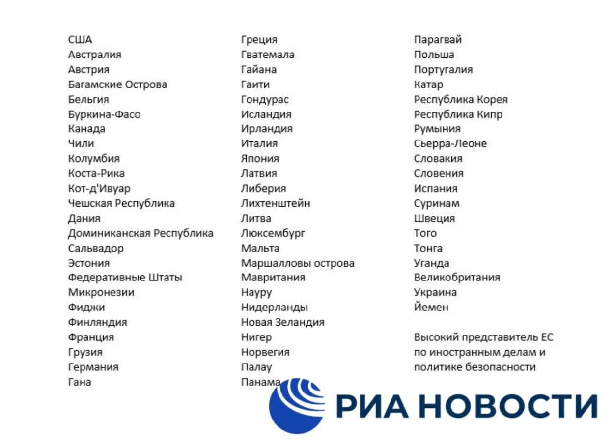 Դիմումին սատարող երկրների թվում էին ԱՄՆ -ը, Ֆրանսիան, Գերմանիան, Ուկրաինան, Իտալիան և Միացյալ Թագավորությունը: