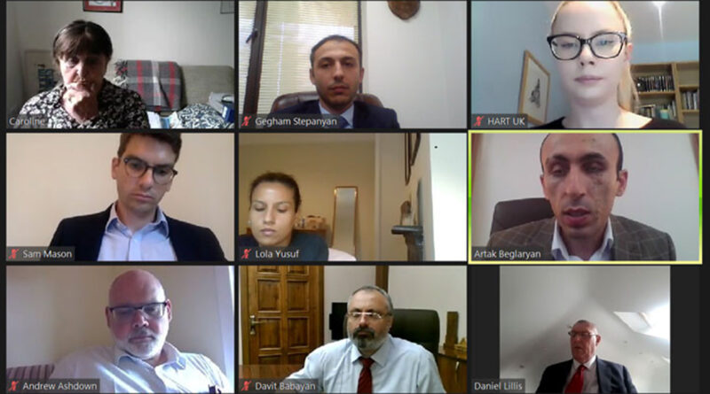 Արցախի Հանրապետության Պետական նախարար Արտակ Բեգլարյանի, Մարդու իրավունքների պաշտպան Գեղամ Ստեփանյանի և Արտաքին գործերի նախարար Դավիթ Բաբայանի մասնակցությամբ օգոստոսի 20-ին տեղի է ունեցել առցանց քննարկում Մեծ Բրիտանիայի և Հյուսիսային Իռլանդիայի Միացյալ թագավորության խորհրդարանի Լորդերի պալատի անդամ բարոնուհի Քերոլայն Քոկսի և Մարդասիրական օգնության բարեգործական կազմակերպության (HART-Humanitarian Aid Relief Trust) անդամների հետ։