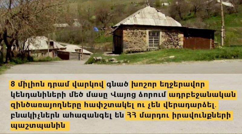 8 միլիոն դրամ վարկով գնված խոշոր եղջերավոր կենդանիների մեծ մասը Վայոց ձորում ադրբեջանական զինծառայողները հափշտակել ու չեն վերադարձել․ բնակիչներն ահազանգել են ՀՀ մարդու իրավունքների պաշտպանին