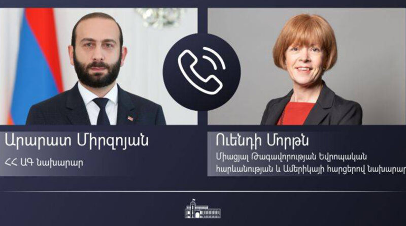 ԱԳ նախարար Արարատ Միրզոյանը հեռախոսազրույց է ունեցել ՄԹ Եվրոպական հարևանության և Ամերիկայի հարցերով նախարար Ուենդի Մորթնի հետ