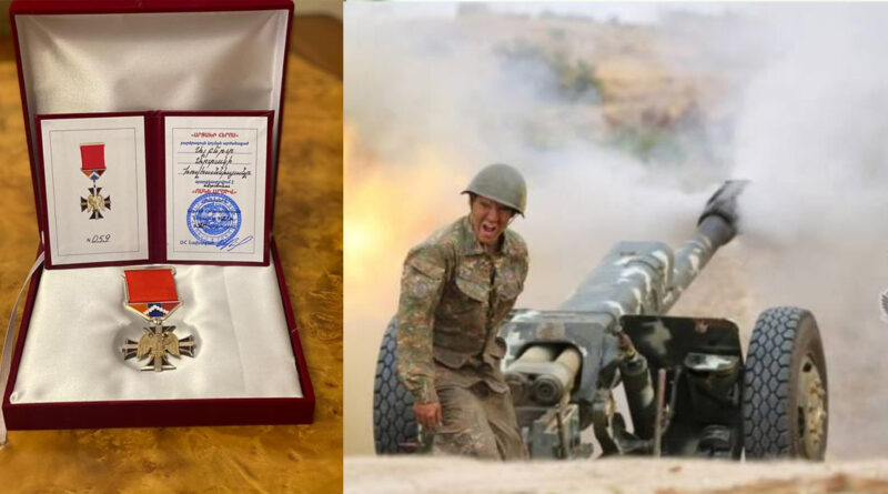 Այսօր՝ հրետանավորի օրը, Երևանում՝ Արցախի ներկայացուցչությունում, Ալբերտի հորը՝ Արտակ Հովհաննիսյանին հանձնել եմ հերոս որդու «Ոսկե արծիվ» շքանշանը։