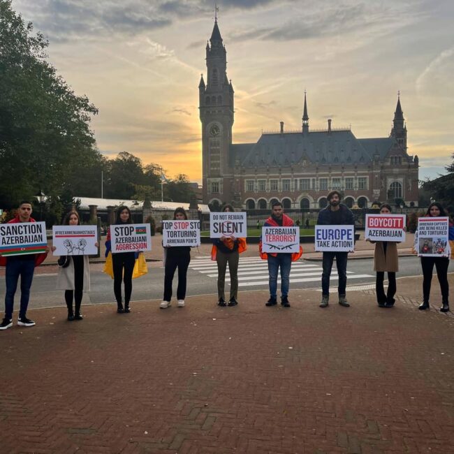 ՀՅԴ Հայաստանի երիտասարդական միությունից տեղեկացրել են, որ Հոլանդիայի հայ երիտասարդները ցույց են իրականացնում ՄԱԿ-ի միջազգային դատարանի դիմաց։ Այնտեղ ընթանում են «Ադրբեջանն ընդդեմ Հայաստանի հայցով» լսումները։