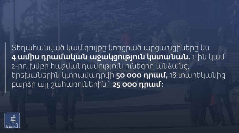 Տեղահանված կամ գույքը կորցրած արցախցիները ևս 4 ամիս աջակցություն կստանան