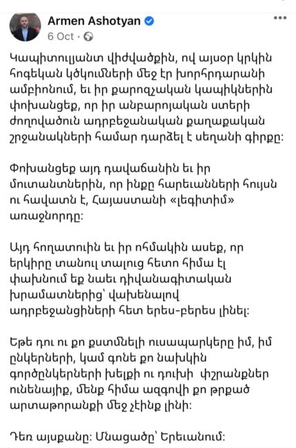 Հայաստանը Նիկոլի ձեռքն է կրակն ընկել, աշխարհը՝ սիոնիստական Իսրայելի և նրա ճիվաղ վարչապետի կամակատար Թրամփի