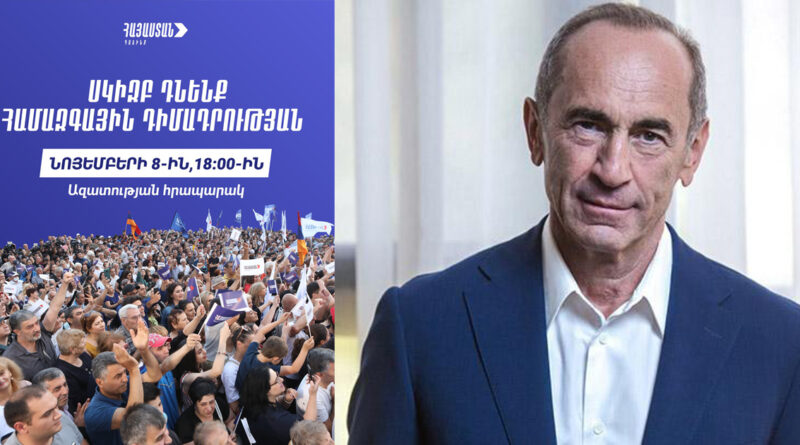 ՀՀ երկրորդ նախագահ Ռոբերտ Քոչարյանը ֆեյսբուքյան իր էջում կիսել է «Հայաստան» դաշինքի կողմից նոյեմբերի 8-ին հրավիրած հանրահավաքի մասին տեղեկությունն ու գրել.