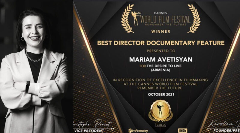 Արցախցի երիտասարդ կինոռեժիսոր Մարիամ Ավետիսյանի «Ապրելու ցանկություն» ֆիլմը Կաննի կինոփառատոնում հաղթող է ճանաչվել «Բնիկ մարդկանց մասին լավագույն ֆիլմ» անվանակարգում: Իսկ Մարիամ Ավետիսյանը ճանաչվել է լավագույն լիամետրաժ վավերագրական ֆիլմի ռեժիսոր: