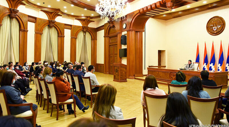 Պատասխանելով ուսուցիչների՝ ապագայի և անվտանգության վերաբերյալ մտահոգություններին և հուզող հարցերին՝ նախագահը շեշտել է, որ Արցախի ժողովուրդն ու իշխանությունները երբևէ չեն ընդունելու Ադրբեջանի կազմում որևէ կարգավիճակ, իսկ երկրի անվտանգ կենսագործունեությունն ապահովում և ապահովելու են Պաշտպանության բանակն ու ՌԴ խաղաղապահ զորակազմը։