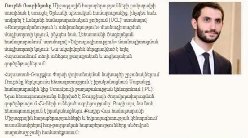 Նաև շատ հետաքրքիր է, թե արդյո՞ք իրեն ընտրողները տեղյակ էին, որ 2017-2018 թթ-ին Ռուբինյանը սովորել է Թուրքիայում։ Եվ հաջորդ հարցը, ինչու՞ է նրա կենսագրությունից հանված Թուրքիայում սովորելու վերաբերյալ հատվածը։ Թաքցնելու բան ունի՞: