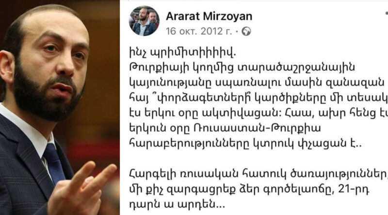 Արարատ Միրզոյանը ծաղրել է Թուրքիան սպառնալիք համարող հայ փորձագետներին և ՌԴ հատուկ ծառայություններին. «Դեժավյու»