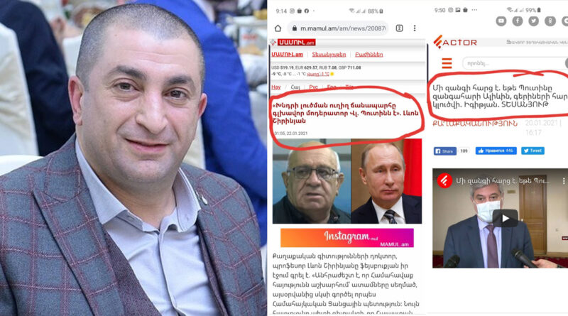 Իսկ այսօր արդեն իր կենդանական հակառուսականությամբ հայտնի և Նիկոլին անվերապահորեն ծառայող Լևոն Շիրինյանը, ով վերջին արցախյան պատերազմից 6 օր առաջ ԶԼՄ-ներից մեկին տված հարցազրույցում հայտնել էր, որ «հայն ավելի լավ է թուրքի շուն լինի, քան թե օտար պետության գործակալ», ինչպես նաև կրկին հակառուսական հռետորաբանությամբ էր հանդես եկել, գրառում է արել և «բացահայտել», որ «գերիների խնդրի լուծման ուղիղ ճանապարհը գլխավոր մոդերատոր Վլ. Պուտինն է»՝ կոչ անելով համայն հայությանը ստորագրահավաք սկսել…