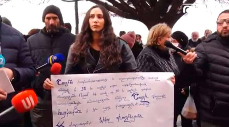 «Եռաբլուր» զինվորական պանթեոնում Շուշիի վերաբերյալ Նիկոլ Փաշինյանին հարց ուղղած լրագրող Լիա Սարգսյանն այսօր Կառավարության դիմաց ակցիա էր իրականացնում։
