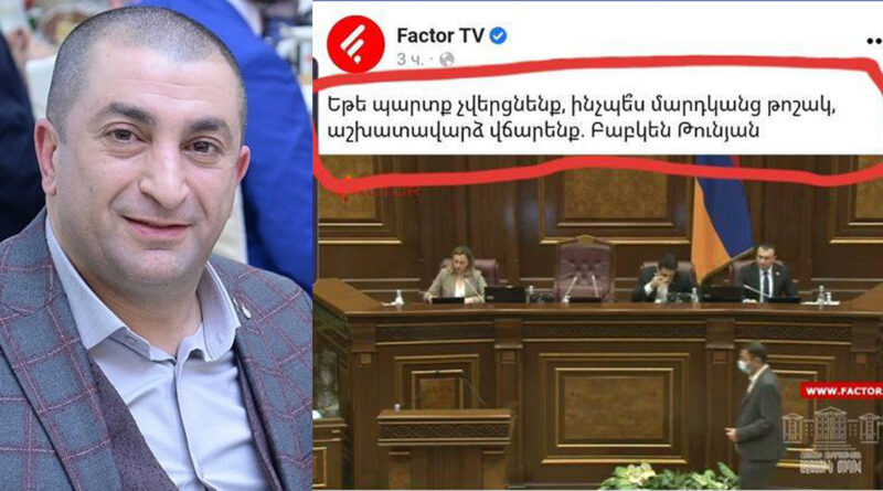 ԱԺ-ում դավաճան Նիկոլին սպասարկող քայլիստ Բաբկեն Թունյանն անկեղծացել և բացահայտել է, որ եթե Հայաստանը պարտքեր չվերցնի, չի կարողանա վճարել թոշակներն ու աշխատավարձերը… Դե Բաբկենը «մոռացել էր» նշել նաև իրենց վճարվող պարգևավճարները…