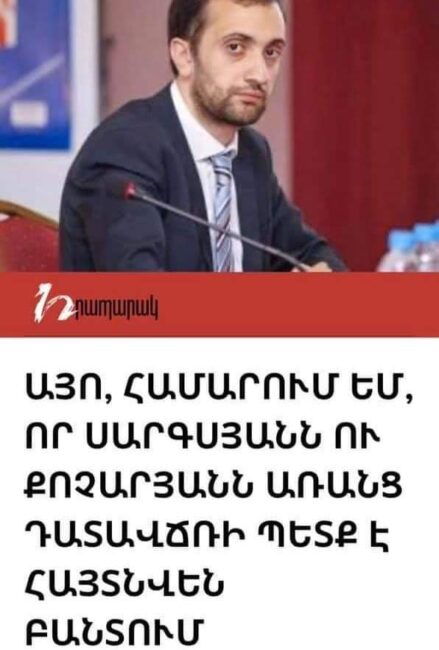 Սույն ոչնչության տերերը՝ կոնկրետ ԱՄՆ դեսպանատունը, պետք է ականջին օղ անի՝ վարունգը թարս աճելու բնավորություն ունի: Լիբերալ-դեմոկրատների անվան տակ ամերիկացիների բուծած այս ֆաշիստներն իրենց անփառունակ ուղին պատի տակ են ավարտում: Որովհետև քամի ցանողը որպես կանոն փոթորիկ է հնձում: