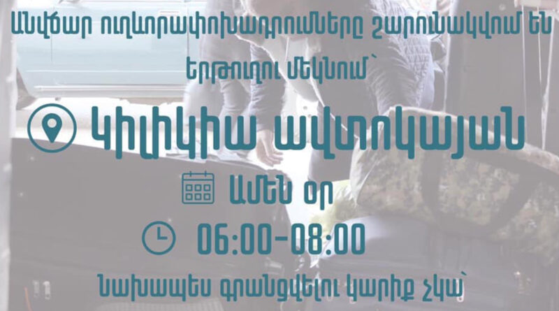 «Մեքենաները մեկնում են Երևանի Կիլիկիա ավտոկայանից, 06.00-08.00 ժամերին»,- ասված է տարածված հաղորդագրությունում։
