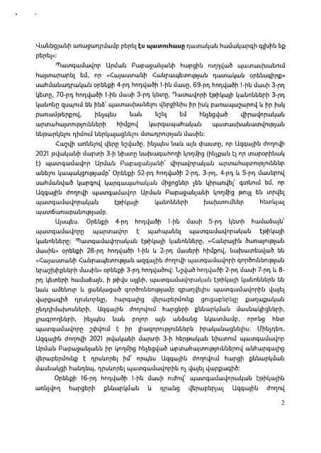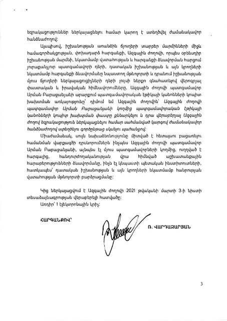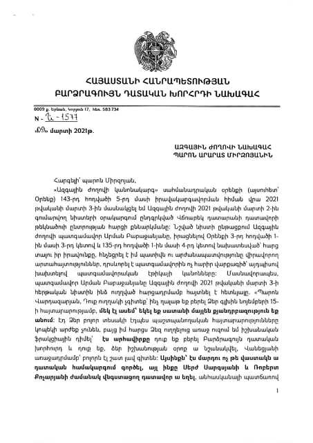 Բարձրագույն դատական խորհրդի նախագահ Ռուբն Վարդազարյանը Ազգային ժողովում ս/թ մայիսի 3-ին ԱԺ անկախ պատգամավոր Արման Բաբաջանյանի՝ իրեն հարց ուղղելու ընթացքում պատգամավորի համար անթույլատրելի վարքագիծ դրսևորելու փաստով դիմել է ԱԺ նախագահ Արարատ Միրզոյանին՝ Արման Բաբաջանյանի կողմից պատգամավորական էթիկայի կանոնների կոպիտ խախտման փաստը քննարկելու և դրա վերաբերյալ ԱԺ եզրակացություն ներկայացնելու համար սահմանված կարգով ժամանակավոր հանձնաժողով ստեղծելու գործընթաց սկսելու պահանջով: