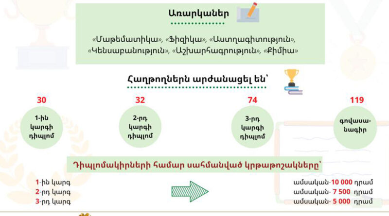 Դպրոցականների առարկայական օլիմպիադայի հանրապետական փուլի հաղթողները կստանան անվանական կրթաթոշակ. ԿԳՄՍՆ