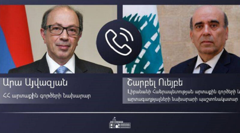 Արա Այվազյանը Լիբանանի ԱԳ նախարարի հետ հեռախոսազրույցում անդրադարձել է տարածաշրջանային անվտանգության և կայունության հարցերի