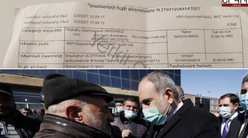 Քաղաքացու կողմից գումարը կանխիկացվել է բանկի՝ Գավառի («Կամո») մասնաճյուղից՝ Փաշինյանի հետ հանդիպումից երեք օր հետո: