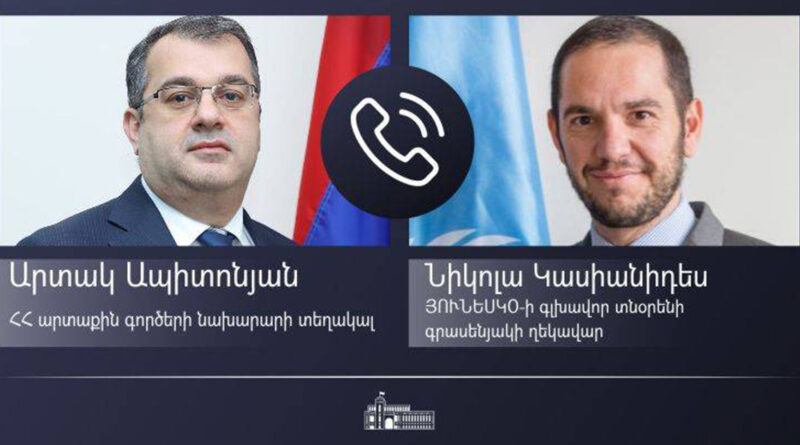 Մարտի 25-ին ՀՀ ԱԳ նախարարի տեղակալ Արտակ Ապիտոնյանը տեսակապի միջոցով զրույց է ունեցել ՅՈՒՆԵՍԿՕ-ի գլխավոր տնօրենի գրասենյակի ղեկավար Նիկոլա Կասիանիդեսի հետ։ Այս մասին հայտնում են ՀՀ Արտաքին գործերի նախարարությունից: