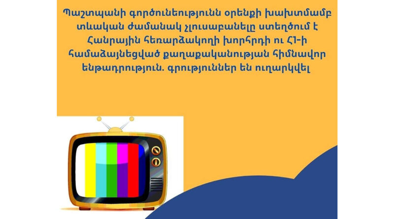 Այս քաղաքականությամբ խախտվում են «Տեսալսողական մեդիայի մասին» ՀՀ օրենքի, ինչպես նաև Մարդու իրավունքների եվրոպական կոնվենցիայի, ԵԽԽՎ, ԵԽ նախարարների կոմիտեի, ԵԱՀԿ-ի և մի շարք այլ միջազգային պահանջներ: Ոտնահարվում է նաև ՀՀ մարդու իրավունքների պաշտպանի աջակցությունը ստանալու, խոսքի ազատության և մի շարք այլ սահմանադրական դրույթներ: