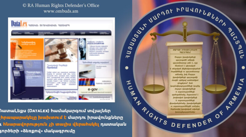 ԴատաԼեքսում տվյալներ չհրապարակելը խախտում է մարդկանց իրավունքները և հնարավորություն չի տալիս վերահսկել դատական գործերի «ձեռքով» մակագրումը․ ՄԻՊ
