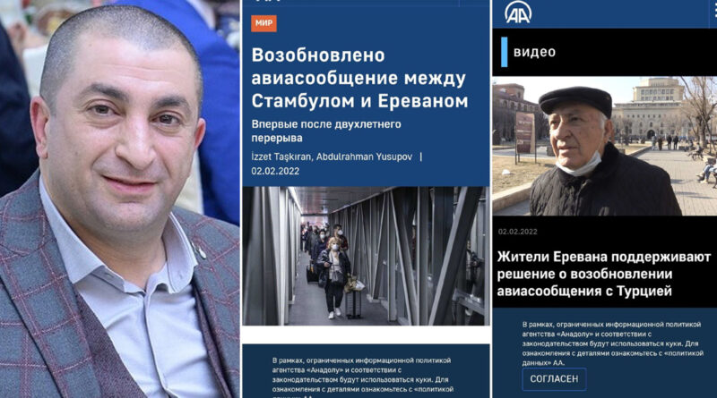 Երևան- Ստամբուլ չվերթների վերաբացմանն է անդրադարձել թուրքական պետական ANADOLU գործակալությունը, որը փետրվարի 2-ին երկու նյութ է տեղադրել այդ «դարակազմիկ իրադարձության» վերաբերյալ…