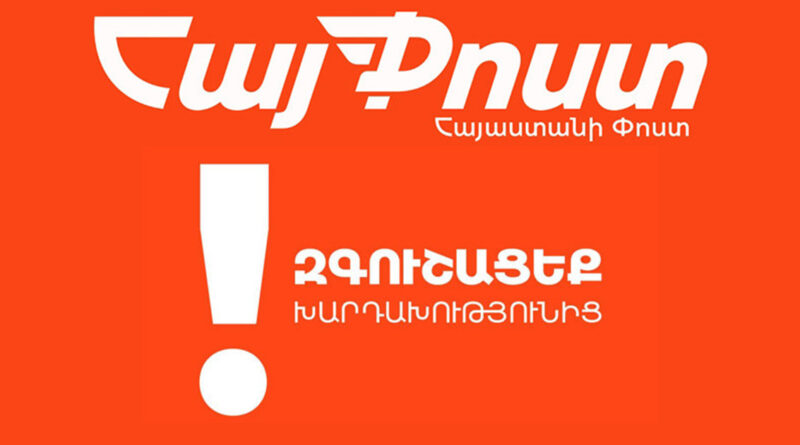 «ՀայՓոստ» ընկերությունը քաղաքացիներին հորդորում է զգուշանալ խարդախներից, չտրամադրել նրանց անձնական տվյալներ։