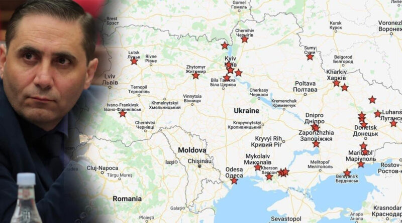 Քարտեզում պատկերված են այն ուկրաինական քաղաքները, որոնց մերձակայքում տեղակայված են ուկրաինական ռազմական ենթակառուցվածքները։