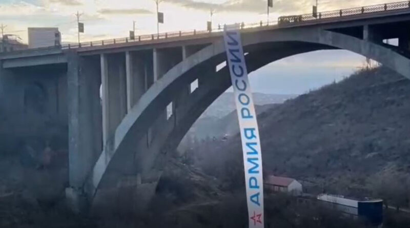 Երևանի Կիևյան կամրջի վրա «АРМИЯ РОССИИ» գրությամբ 50 մետր երկարությամբ պաստառ է փակցվել։