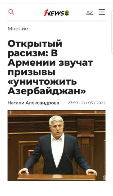 «Բաքվի բռնապետի գրեթե բոլոր «առաջատար» քարոզչամիջոցները մի շարք կիսագրագետ գրչակների «մտքի թռիչքով» ինձ այսօր կոչել են «ռասիստ», «ֆաշիստ», «նացիստ», «թյուրքատյաց» և այլ նման անհիմն բնորոշումներով։