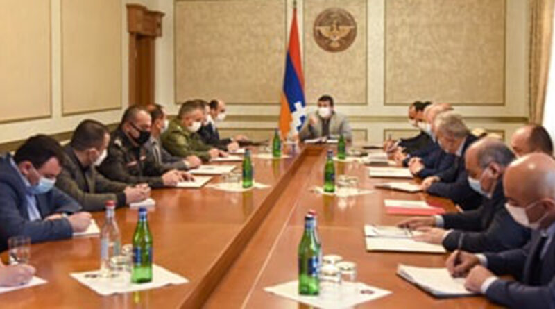 Անդրադառնալով ստեղծված ռազմաքաղաքական իրավիճակի վերջին զարգացումներին՝ Արայիկ Հարությունյանը շեշտադրել է, որ հատկապես վերջին օրերին Արցախի բնակավայրերի ու խաղաղ բնակչության նկատմամբ Ադրբեջանի կողմից ինտենսիվ կերպով կիրառվող ռազմական և հոգեբանական բնույթի ագրեսիան պայմանավորված է առաջնահերթորեն արտաքին քաղաքական գործընթացներով: Ներկաներին ներկայացվել են այն հիմնական աշխատանքները, որոնք Արցախի իշխանությունները շուրջօրյա ռեժիմով ու տարբեր մակարդակներում իրականացնում են իրավիճակը կայունացնելու, լիցքաթափելու և ադրբեջանական զորքերը ելման դիրքեր վերադարձնելու ուղղությամբ: