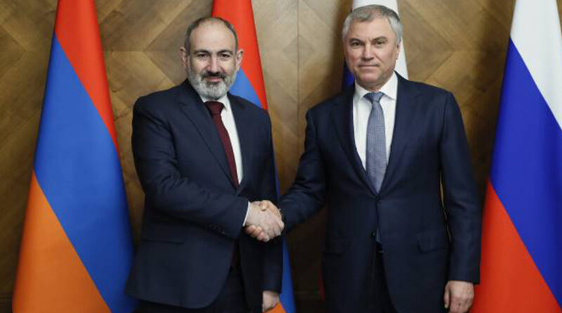 Վարչապետ Նիկոլ Փաշինյանը պաշտոնական այցի շրջանակում այցելել է Ռուսաստանի Դաշնության պետական դումա` հանդիպում ունեցել Պետդումայի նախագահ Վյաչեսլավ Վոլոդինի հետ: