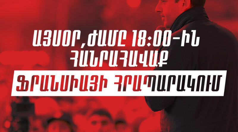 Այսօր ժամը 18:00 հանրահավաք Ֆրանսիայի հրապարակում