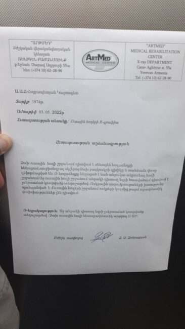 Ստորև ներկայացնում ենք Կարապետ Հայրապետյանի բժշկական հետազոտության արձանագրությունը:
