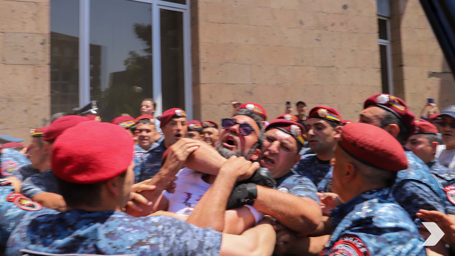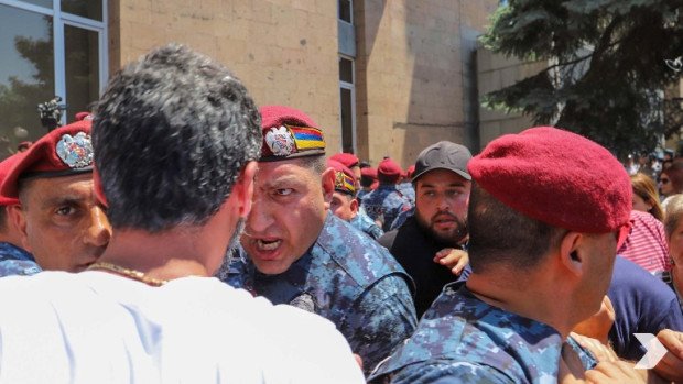 Կառավարության 3-րդ մասնաշենքի մուտքի մոտ «Դիմադրության» շարժման մասնակիցների և ոստիկանների միջև հրմշտոց սկսվեց. Ոստիկանները բիրտ ուժ կիրառելով փորձում էին թույլ չտալ ցուցարարներին մուտքը մասնաշենք: Այդ ընթացքում կարմիրբերետավորները բիրտ ուժ կիրառեցին ԱԺ «Հայաստան» խմբակցության պատգամավոր Արամ Վարդևանյանի նկատմամբ: Մասնավորապես, ոստիկաններից մեկը հետևից կողմից ձեռքով սեղմում էր պատգամավորի վիզը: