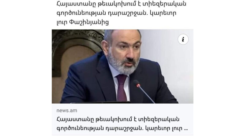 Հայաստանի տարածքը, սահմանները քայլ առ քայլ հանձնել են թշնամուն, բայց թլոզում են, թե արբանյակն օգտագործվելու է սահմանազատման գործընթացում