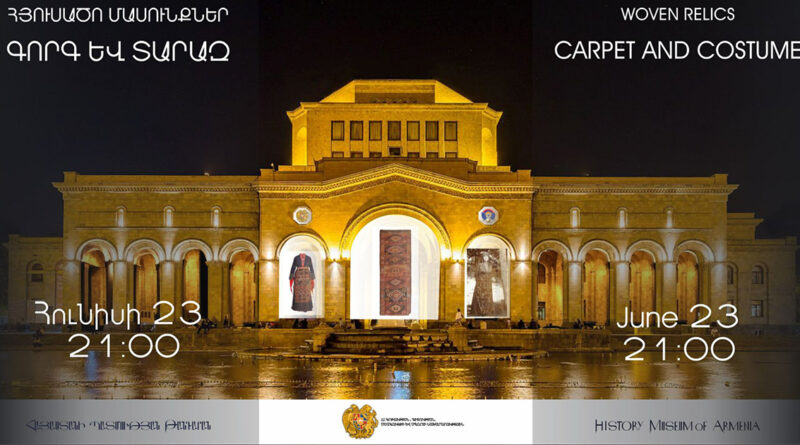 Հունիսի 23-ին, ժամը 21։00-22։00 Հանրապետության հրապարակ՝ Հայաստանի պատմության թանգարանի մուտքի մոտ՝ կայանալու է «Հյուսածո մասունքներ․ գորգ և տարազ» խորագրով լուսաձայնային ինստալացիա-ցուցադրությունը։