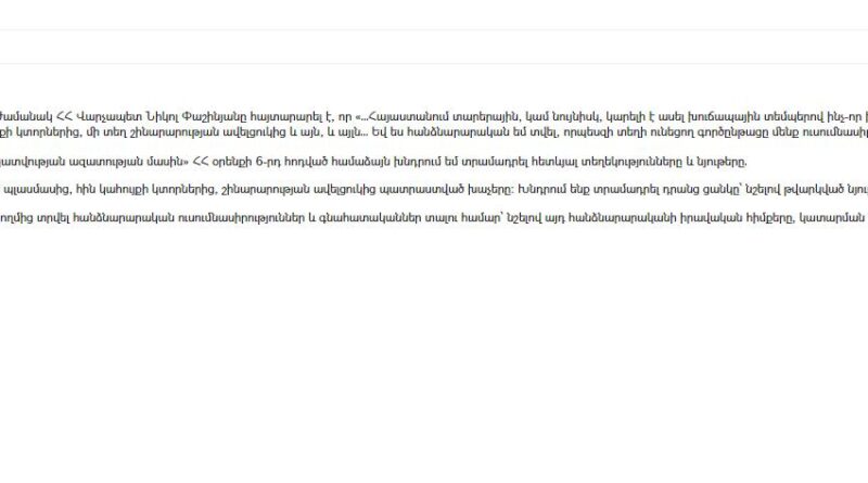 Քիչ առաջ պաշտոնական հարցում եմ ուղարկել ՀՀ վարչապետի աշխատակազմ՝ ակնկալելով հետևյալ