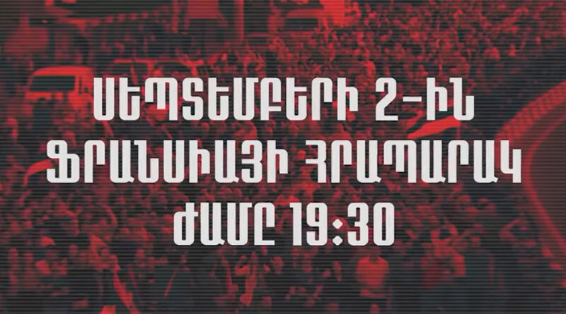 «Ոտքի կանգնենք, որ չկորցնենք… Սեպտեմբերի 2-ին, ժամը 19:30-ին մեծ հանրահավաք Ֆրանսիայի հրապարակում»,- գրել է նա։