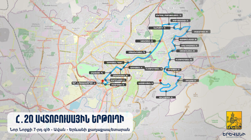 հ. 20 երթուղի – (Նոր Նորքի 7-րդ զ/ծ- Ավան- Երևանի քաղաքապետարան)