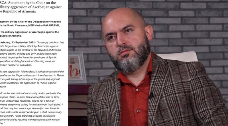 Հարավային Կովկասի հետ հարաբերությունների պատվիրակության նախագահ, Եվրախորհրդարանի պատգամավոր Մարինա ԿԱԼՅՈՒՐԱՆԴԻ հայտարարությունը Հայաստանի Հանրապետության դեմ Ադրբեջանի ռազմական ագրեսիայի վերաբերյալ։