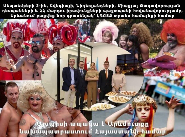 Ավելին. Հայաստանի դեմ Ադրբեջանի լայնածավալ ագրեսիայից շուրջ 10 օր առաջ` սեպտեմբերի 2-ին, «Իրավունքի կողմ» ՀԿ-ի կողմից Շվեդիայի, Նիդերլանդների, Միացյալ Թագավորության դեսպանների և նիկոլական, ԱԺ կոչվածի «Քաղաքացիական պայմանագիր» խմբակցության կողմից առաջադրված և Հայաստանի ոստիկանական բռնապետության մարդու իրավունքների պաշտպան ընտրված Քրիստինե Գրիգորյանի աջակցությամբ Երևանում բացվել է նոր գրասենյակ ` «ապահով տարածք ԼԳԲՏՔ տրանս համայնքի համար»: Այս մասին տեղեկացրել է Հայաստանում Շվեդիայի դեսպանությունը: