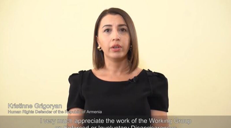 ՀՀ մարդու իրավունքների պաշտպան Քրիստիննե Գրիգորյանը տեսաուղերձով հանդես է եկել ՄԱԿ-ի Մարդու իրավունքների խորհրդի 51-րդ նստաշրջանի շրջանակում անցկացվող Բռնի անհետացումների հարցերով աշխատանքային խմբի հետ քննարկմանը։ (Տեսաուղերձը նկարահանվել է օգոստոսի 31-ին, քարտուղարության կանոնների համաձայն՝ ուղարկվել է սեպտեմբերի 8-ին)։