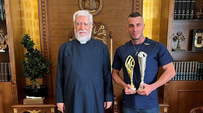Արամ Ա կաթողիկոսն ընդունել է Լիբանանի մարմնակազմավորման չեմպիոն, զինծառայող Խաչիկ Արժինեանին