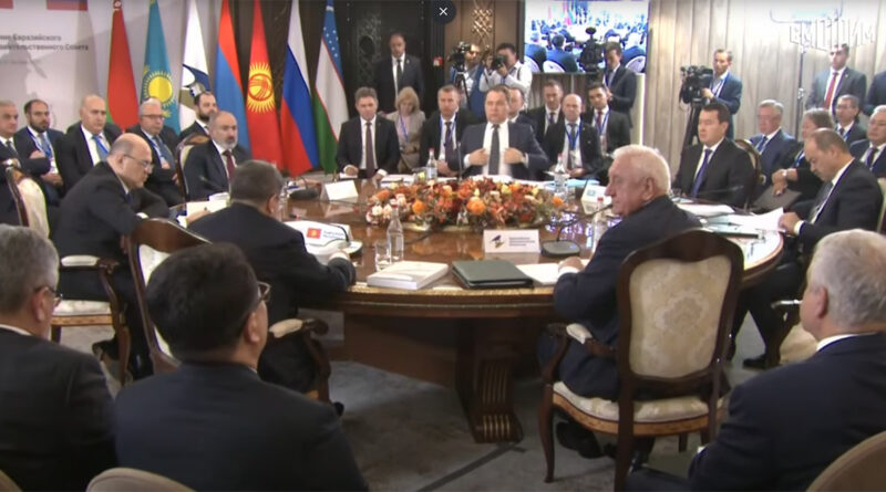 Հոկտեմբերի 20-ին տեղի է ունեցել Եվրասիական միջկառավարական խորհրդի նիստը՝ նեղ կազմով: Քննարկվել են եվրասիական տարածքում ինտեգրացիոն գործընթացների զարգացմանը վերաբերող օրակարգային հարցեր: