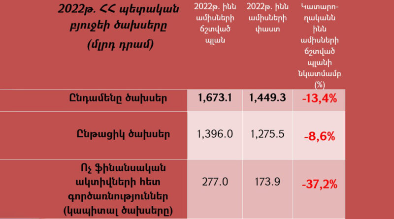 «2022 թվականի 9 ամիսների ընթացքում ՀՀ պետական բյուջեի ծախսերը թերակատարվել են 13,4 տոկոսով։