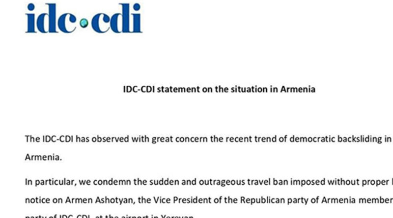 Կենտրոնամետ Դեմոկրատների Միջազգային Միությունը (CDI) մեծ մտահոգությամբ է հետևում Հայաստանում ժողովրդավարության հետընթացի վերջին միտմանը:
