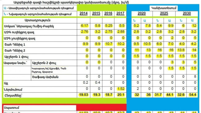 - Համաձայն փորձագիտական կանխատեսումների՝ արդեն 2030-ականներին Ադրբեջանի գրեթե բոլոր շահագործվող գազի հանքավայրերը բնական կրճատման են գնալու։