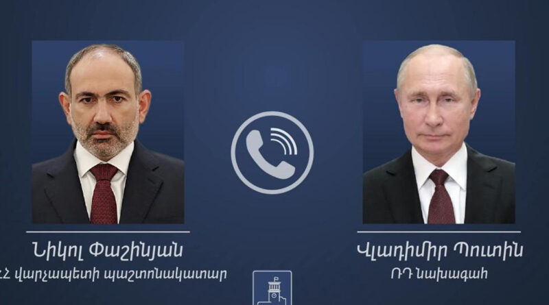 Վարչապետ Նիկոլ Փաշինյանը հեռախոսազրույց է ունեցել Ռուսաստանի Դաշնության նախագահ Վլադիմիր Պուտինի հետ: